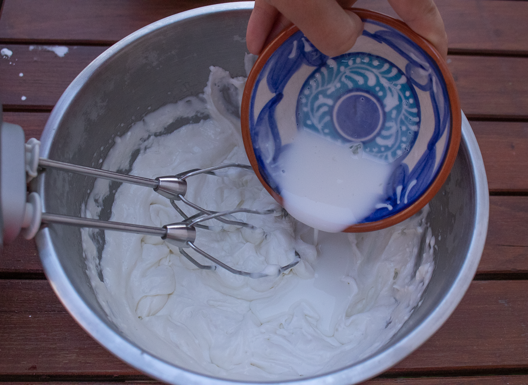 3. Vyšľaháme bielka a postupne pridávame cukor.