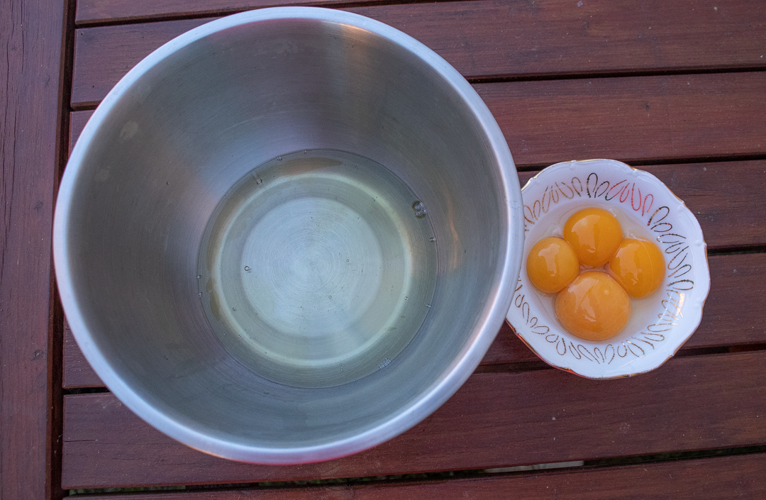 2. Oddelíme žĺtky od bielkov.